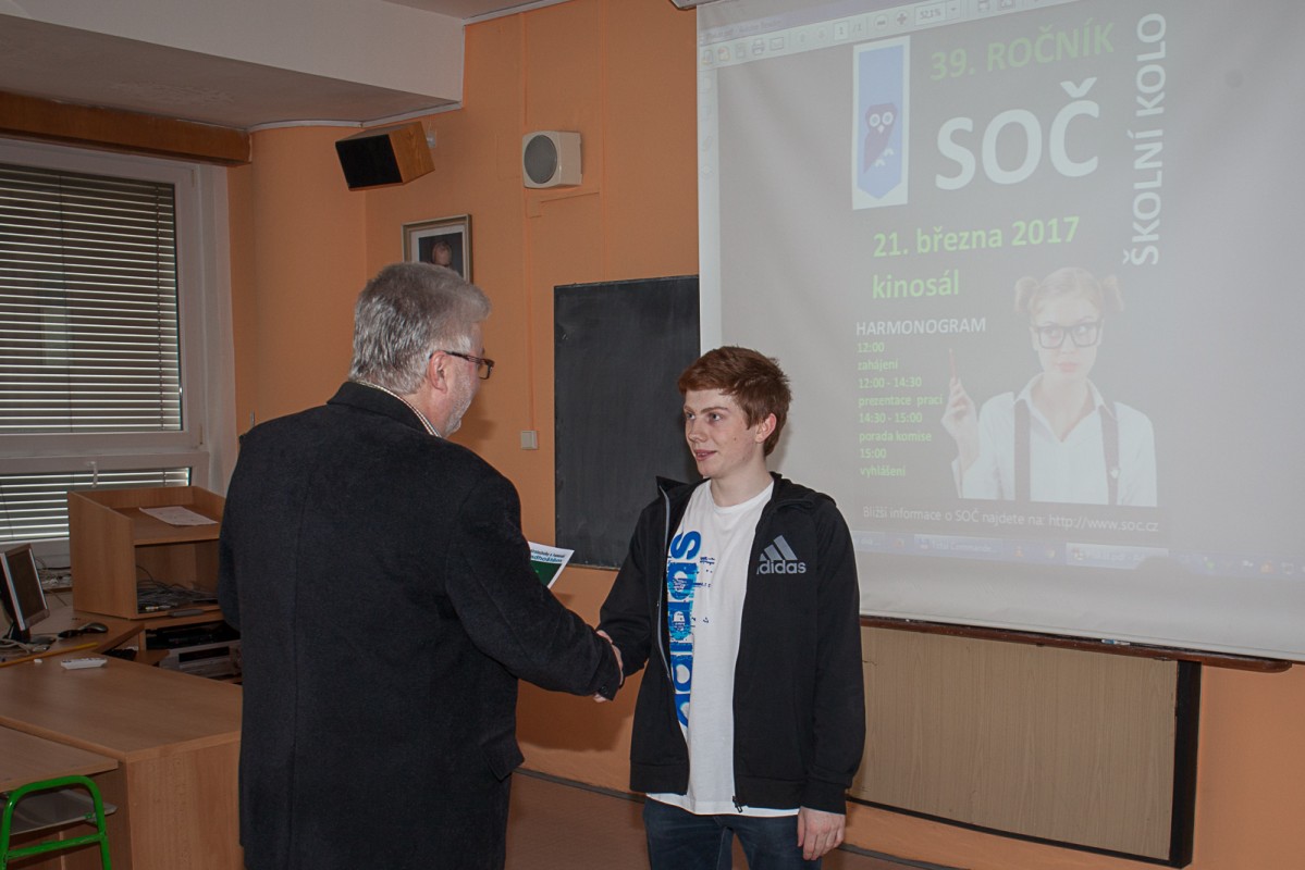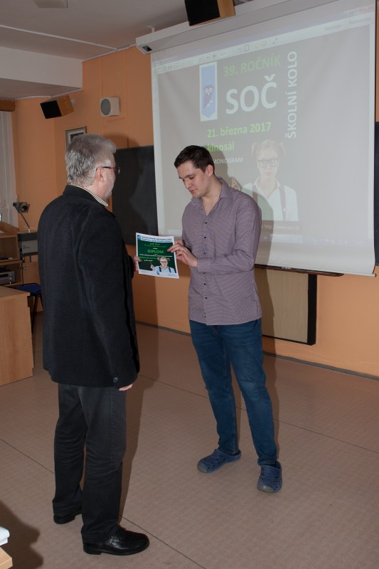 Okresní kolo se bude konat 4. dubna 2017 již tradičně ve Střední průmyslové škole stavební ve Valašském Meziříčí. Doufáme, že se našim studentům bude dařit a že své práce obhájí co nejlépe. Všichni ocenění obdrželi velmi hodnotné ceny, které se podařilo zajistit paní Ing. Janě Vaculínové od sponzorů - firmy ON-SEMICONDUCTOR, R-Computer, ROBE, NXP, Vakuum Servis a dalších. Všem sponzorům velmi děkujeme.