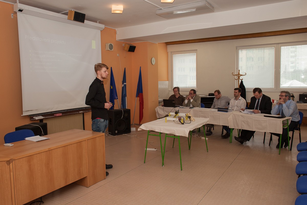 Ing. Federmann - předseda poroty a členové poroty - Ing. Miroslav Pěcha (vedoucí výzkumu firmy BROSE), Ing. Hapl, Ing. Žabčík, Ing. Bukovjan a Mgr. Knápek - odborní učitelé školy.