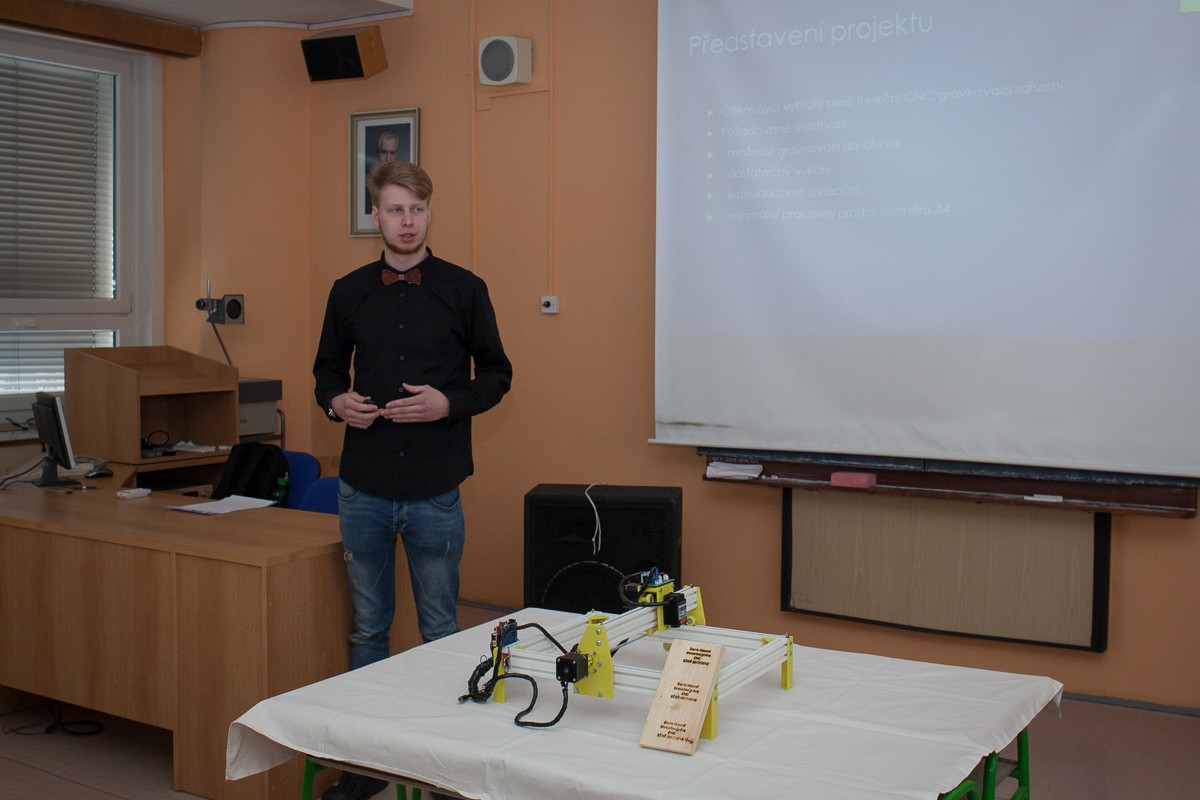 V oboru č.9 STROJÍRENSTVÍ A PRŮMYSLOVÝ DESIGN soutěžil se svou prací student Denis Moural ze třídy ZI4B a všem předvedl svůj „CNC gravírovací laser“.