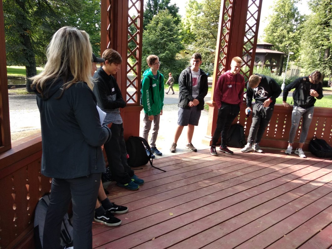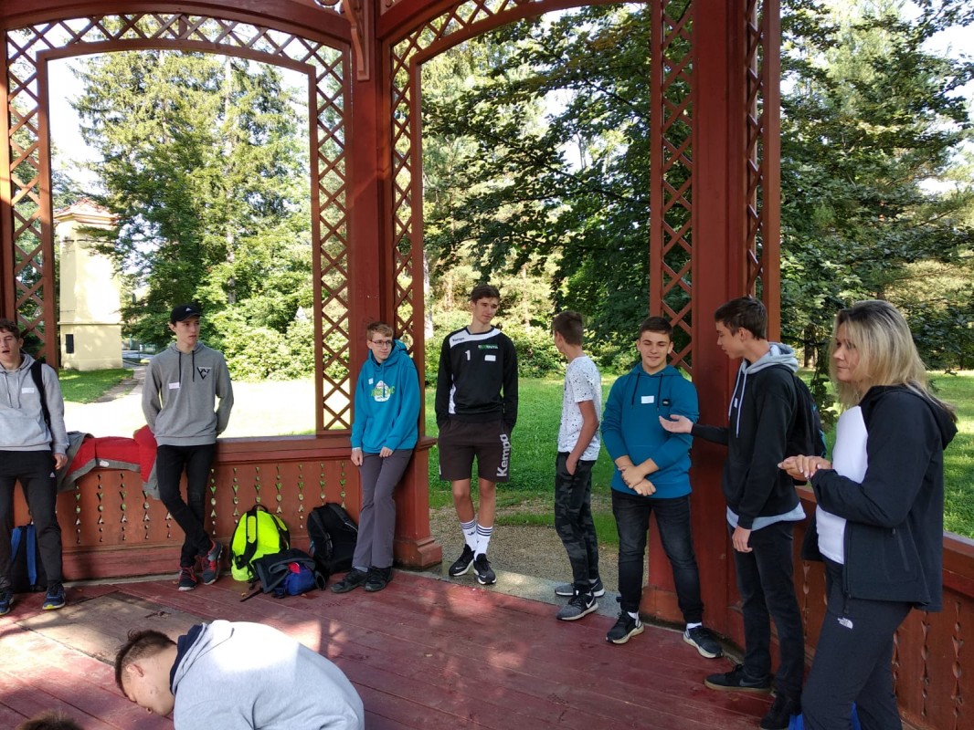 Nejdřív jsme si vydechli na posezení, kde jsme si mohli vybalit svačiny. Na programu bylo hlavně seznamování, aktivity zaměřené na tvorbu kolektivu třídy, osobnostně sociální rozvoj, rozvoj vzájemné komunikace, spolupráce. Všichni si tedy stoupli dokola a po vytvoření skupinek po dvou až třech žácích, si navzájem řekli pár vět o sobě. Poté se měli spolužáci představit navzájem, tedy to, co si navzájem zapamatovali. Paní PhDr. Andrea Bernátková podrobně představila činnost školního psychologa a další instituce vykonávající výchovnou činnost u nás na škole.