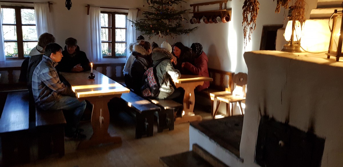 Ten spočíval v návštěvách jednotlivých valašských chalup, kde nás čekaly přadleny, hospodáři a hospodyně, kováři a další představitelé dědiny z dob před 100 až 200 lety. Každý z našich „předků“ nás seznámil s nějakou částí života své doby. Přadleny nám za zvuku kolovrátků vyprávěly o pracích a zábavách během zimních měsíců. Děvčata v jiné chalupě nám předvedla, jak se pekly a zdobily perníky. Hospodyně na statku nám vysvětlila, jak se prostíral sváteční stůl a jak se o Vánocích hodovalo. Kováři nám ukázali výrobu podkovy a nabídli rychlé ošetření zubu – to kupodivu nikdo nevyužil.