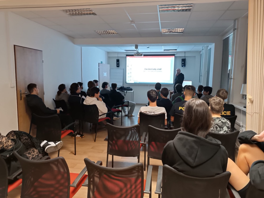 Besedu vedl zkušený pracovník kontaktního centra Agarta Vsetín Jan Dostál, který se specializuje na problematiku návykových látek. Pomocí vizuálních materiálů a interaktivních prvků se studentům podařilo lépe pochopit rizika spojená s užíváním drog. Studenti měli možnost aktivně se zapojit do diskuse. Na závěr besedy byly položeny otázky, které vzbudily živou debatu. Tato interakce umožnila studentům vyjasnit si některé mýty o návykových látkách a získat cenné informace. Součástí besedy byly také příběhy lidí, kteří se potýkali se závislostí. Tato sdílení byla silná a emotivní, pomohla studentům lépe pochopit, jaké následky může mít užívání drog na život jednotlivce a jeho blízké.“