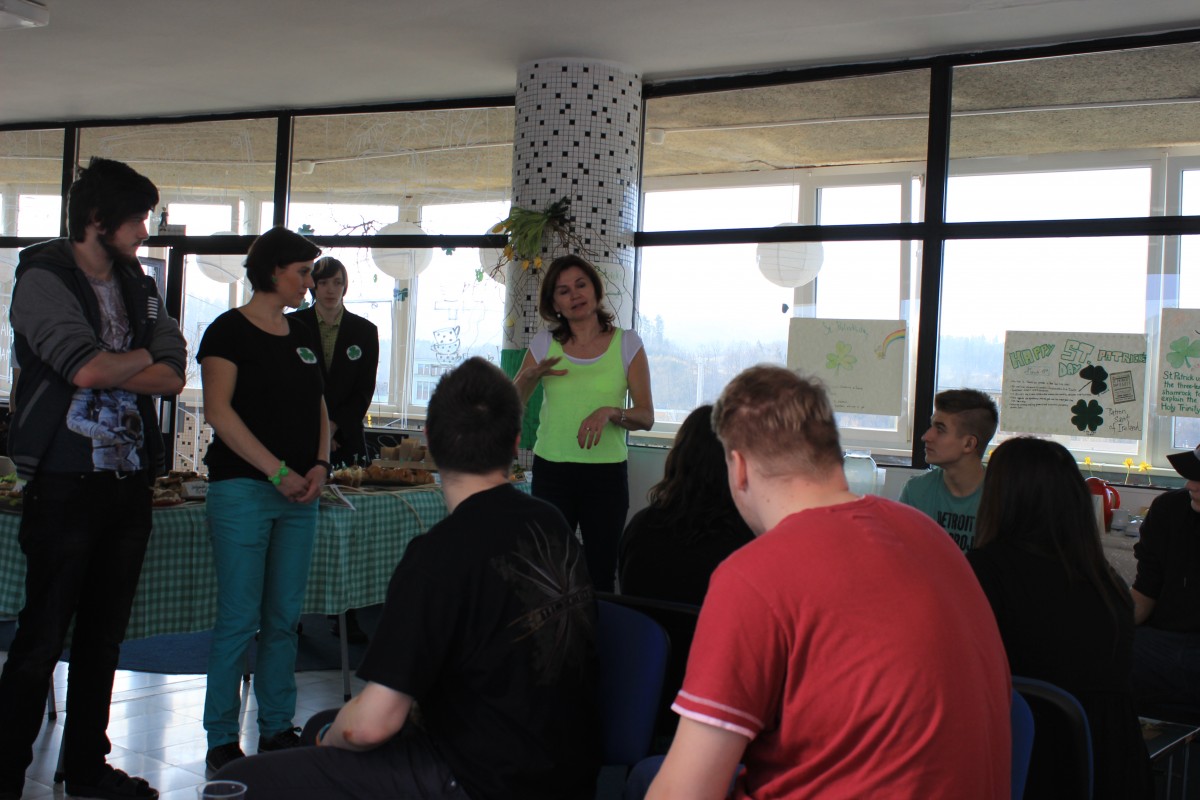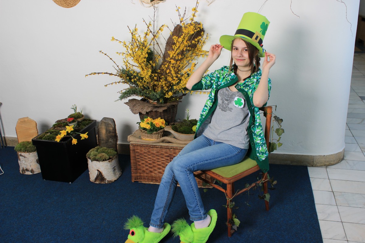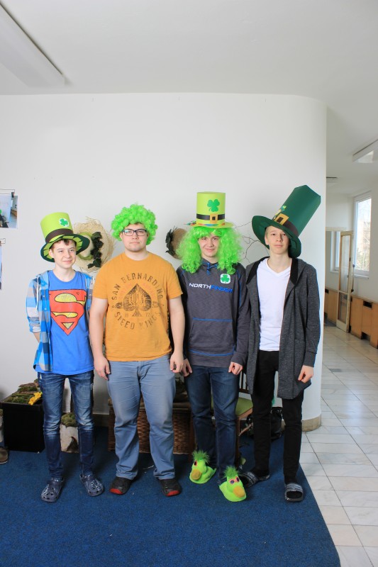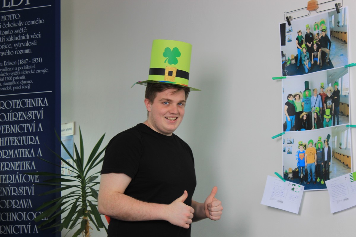 Mno, to není naše úplně první akce. Pár akcí už tady proběhlo, ale dnes máme toho sv. Patrika, a nám se to moc líbí. Učíme se jinak. Já díky tomuto zážitku už nikdy nezapomenu, kdo to sv. Patrik byl, a když budu náhodou někde ve světě a uvidím tancovat partu bláznů v zelených parukách a kloboucích, budu vědět, že je 17. březen. Díváme se dál do kalendáře. Teď se blíží Velikonoce, ale to už asi nestihneme něco připravit. Ale třeba v máji můžeme oslavit majáles nebo v červnu konec školního roku. Všechno to záleží hlavně na nas, žácích, můžeme si sami připravit cokoliv nás napadne..…