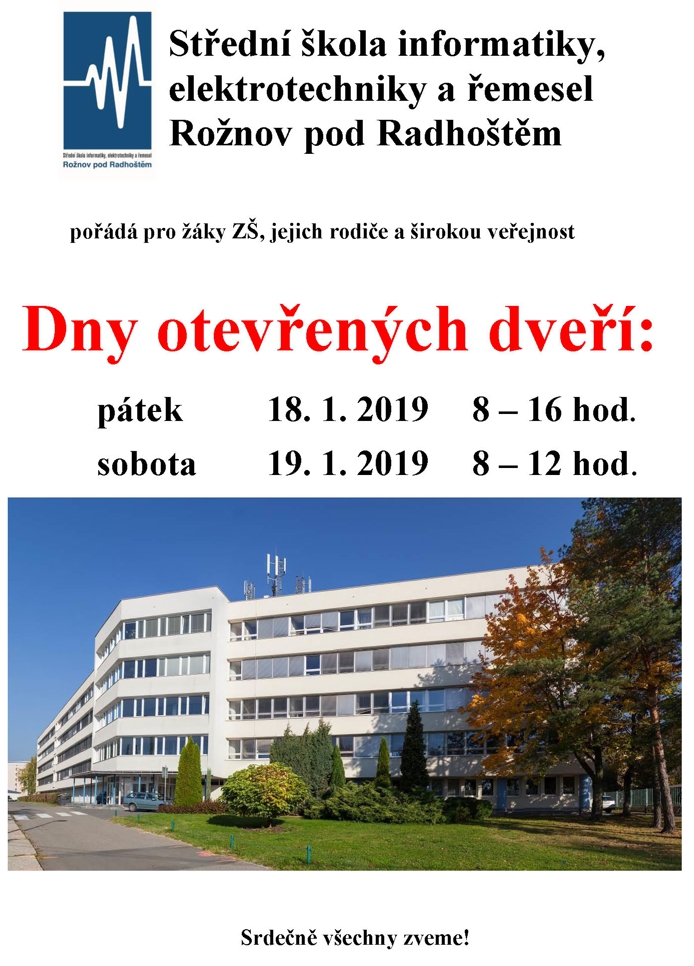 18. a 19. 1. 2019 pořádáme pro žáky ZŠ, jejich rodiče a širokou veřejnost Den otevřených dveří.