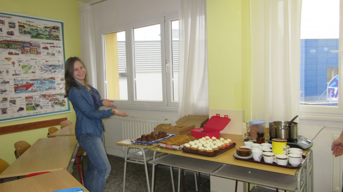 Den byl poměrně vyčerpávající, a tak bylo potřeba načerpat síly. K tomu účelu sloužila Anglická kavárna, v kterou se proměnila jazyková učebna. V ní na žáky čekala káva, ovocný čaj a také několik druhů dezertů, které připravily jejich učitelky. No a kromě toho všeho samozřejmě také angličtináři pan Verner a Mgr. Pružincová, kteří s hosty kavárny komunikovali výhradně anglicky.
