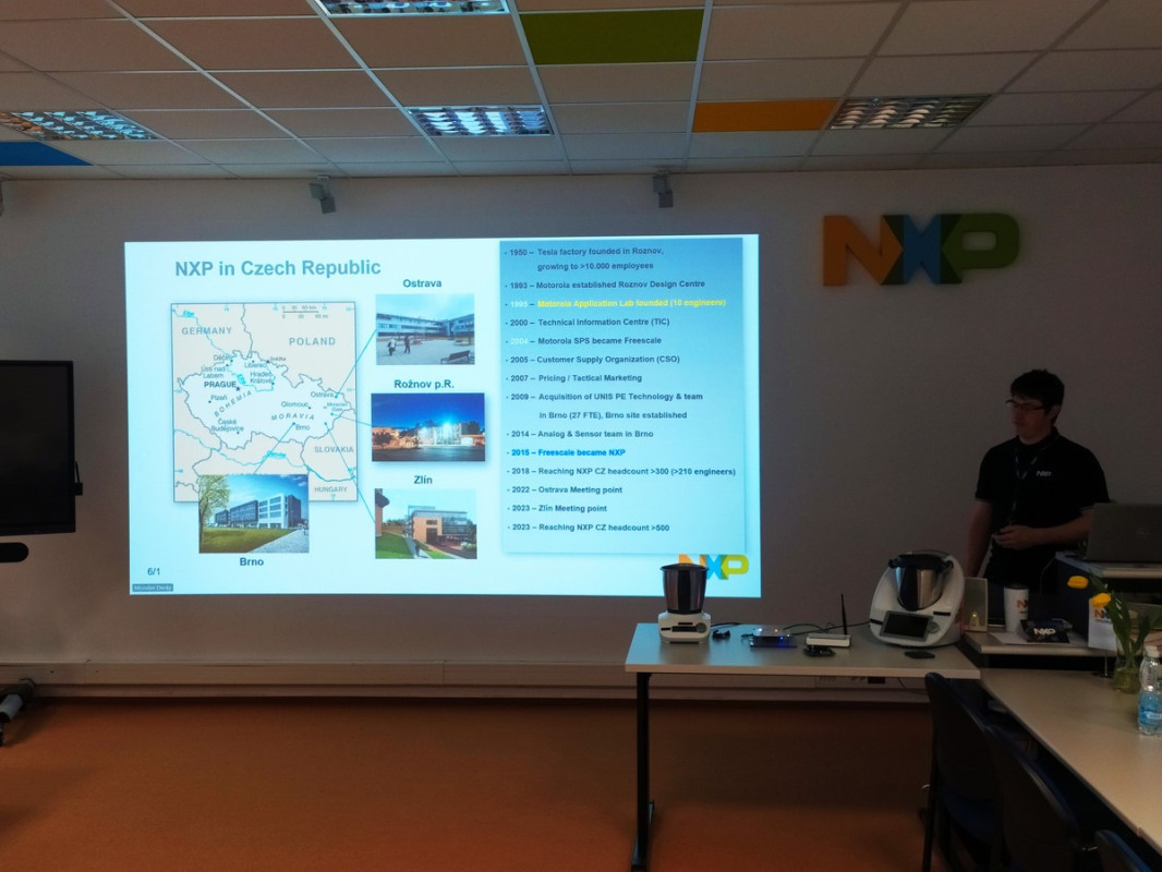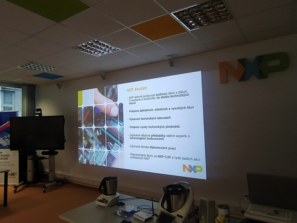 Tato exkurze začala seznámením s firmou, její minulostí a výrobou. Dozvěděli jsme se také, jak firma spolupracuje se studenty. Po zábavné přednášce jsme navštívili dvě oddělení. V prvním se testovaly kamery a zaměstnanec firmy NXP nám zde ukázal, jak fungují přístroje, které se v místnosti nacházely. V druhém oddělení se testovaly bezdrátové nabíječky, což bylo velice zajímavé. Na závěr jsme i dostali pera, bloky a dobré sladkosti.