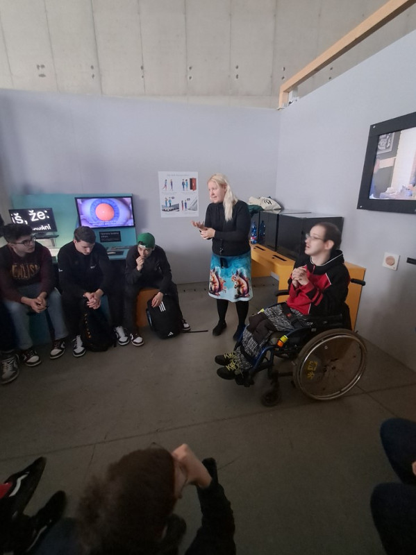 Důležitou součástí exkurze byl také rozhovor s odborníkem a Lukášem – člověkem s handicapem, který sdílel svůj osobní příběhy a zkušenosti. Žáci se dozvěděli, jakým výzvám musí handicapovaní lidé čelit a jak je moderní technologie schopná překonávat různé bariéry, které by je jinak omezovaly.