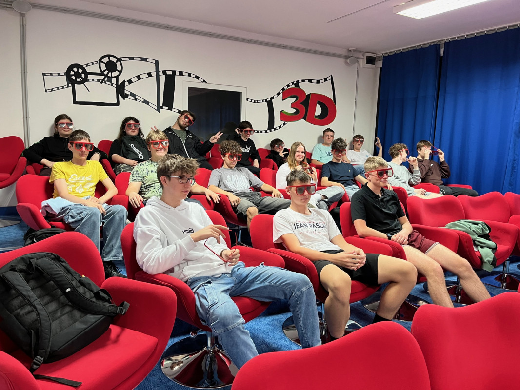 Ihned po příchodu do školy jsme byli zavedeni do kinosálu, kde jsme sledovali dva filmy týkající se života ledních medvědů a vesmíru. Po skončení filmu jsme se rozdělili na dvě skupiny. První skupina šla programovat roboty. Druhá skupina se vrhla do Experimentária, kde jsme se hravou a zajímavou formou dozvěděli něco z oblasti vědy, techniky a moderních technologií.