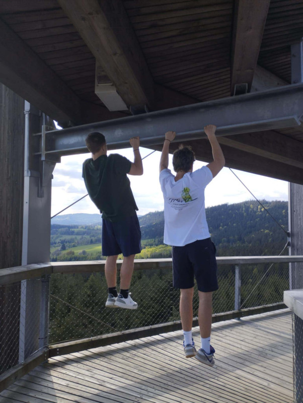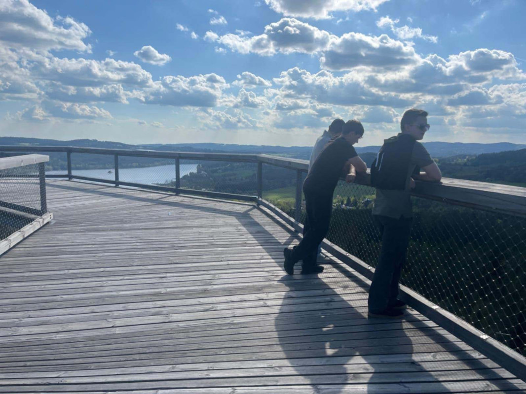 Aby nám cesta lépe utíkala, udělali jsme si přestávku v husitském městě Tábor, kde jsme si s průvodkyní prošli historické centrum. Další zastávkou byla oblíbená Stezka v korunách stromů na Lipně, která nabídla úžasné výhledy na krajinu Šumavy a byla pro žáky příjemným zážitkem v přírodě.