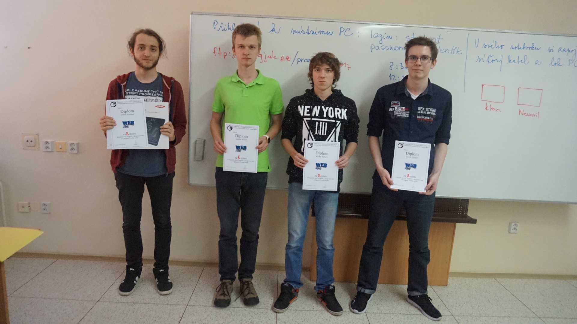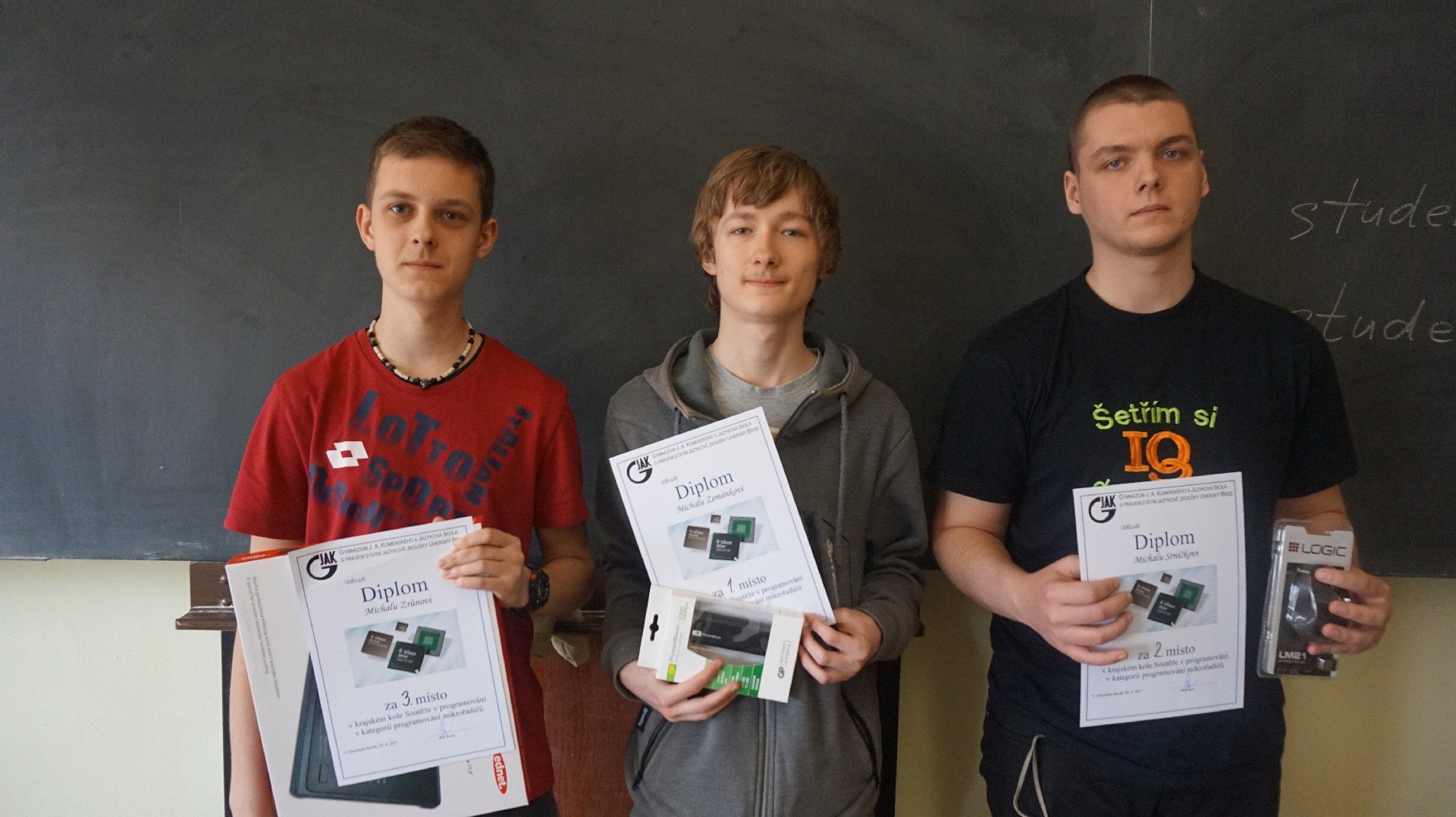 Ve čtvrtek 20. dubna 2017 se na Gymnáziu Jana Ámose Komenského v Uherském Brodě uskutečnilo krajské kolo Soutěže v programování. Naši žáci se zapojili do dvou kategorií a v obou byli úspěšní.