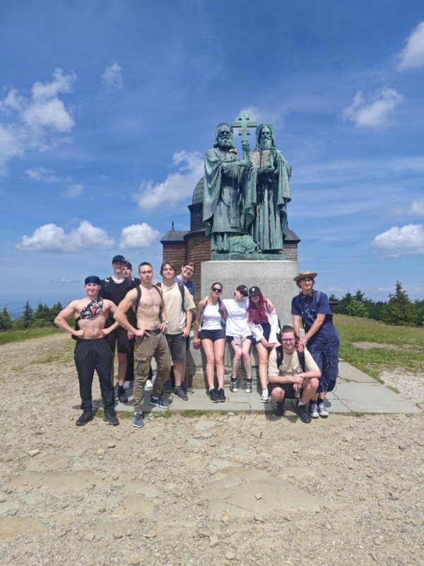 Vyrazili jsme proto na Pustevny a Radhošť. Brána Pusteven, Libušín a Maměnka, vyhlídka Cyrilka, socha pohanského slovanského boha Radegasta, na Radhošti pak silný zážitek – v Kapli sv. Cyrila a Metoděje zažíváme v pravé poledne rozeznění zvonu Radhošť a zpěv modliteb v podání místního valašského patriota naživo. Zpátky pěšky do Rožnova, po 20 kilometrech toho máme plné zuby. Ale bylo fajn, krásná příroda, nádherné výhledy. To je prostředí, ve kterém žijeme. To je cesta, po které aktuálně jdeme, tak proč toho nepoznat ještě víc?