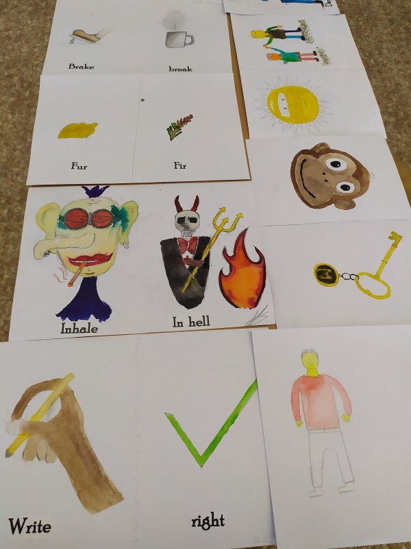 Žáci se před letními prázdninami nechali inspirovat filmovým dokumentem Mr. Kriss. Po zhlédnutí vymýšleli anglické slovní hříčky a namalovali své vlastní akvarely.