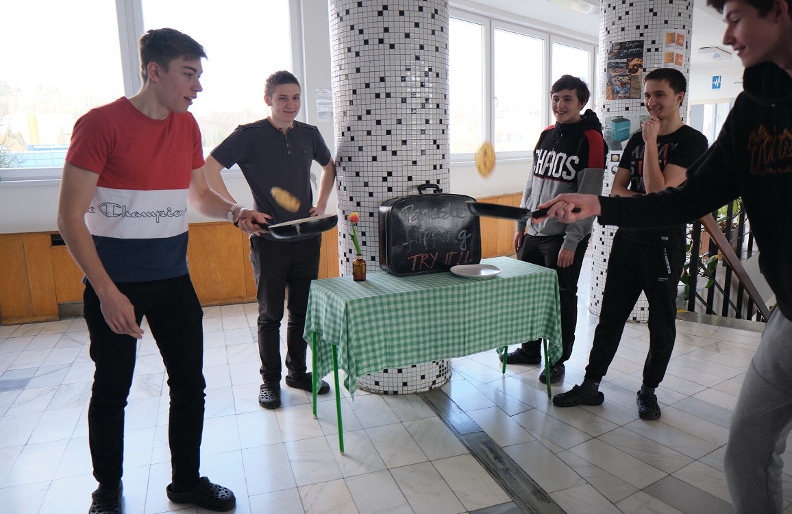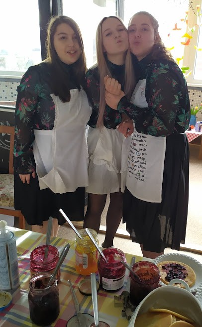 How are you? We are just having an amazing time at school! We are celebrating the famous pancake day.-) Our English teacher gave us some information about it and then we went to taste some pancakes. So here we are, tasting delicious pankes that our girls from school made.-)