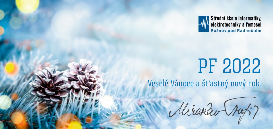 Vážení kolegové, studenti, rodiče, přátelé a partneři školy, přejeme vám nádherné a klidné Vánoce, veselého Silvestra a v roce 2022 pevné zdraví a splnění osobních i pracovních přání.