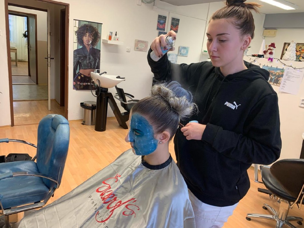 Ve stanoveném časovém limitu museli učesat a nalíčit model podle vlastního návrhu. Díky zadání mohli popustit uzdu své fantazii a pomocí šikovných rukou, barevných laků, podložek a líčidel vykouzlit zajímavé a neobvyklé účesy. Díky kreativitě a zručnosti našich žákyň a žáků se školní kadeřnictví aspoň na chvíli stalo místem doslova pohádkovým.