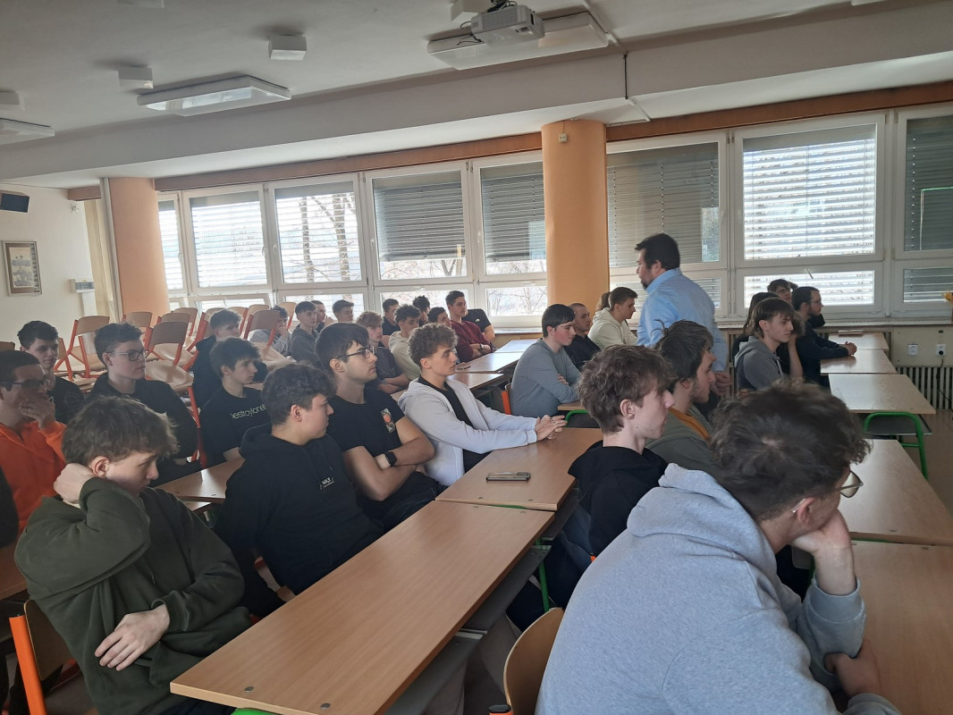 V rámci projektu Bankéři do škol se 7. 3. uskutečnila přednáška pro třídy IT3A, IT3B. IT3C a ME3, kterou vedl pan Bronislav Ptáček, ředitel pobočky UniCredit Bank Valašské Meziříčí. Cílem přednášky bylo studentům přiblížit klíčová témata týkající se finanční gramotnosti a kyberbezpečnosti.