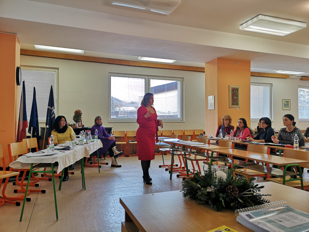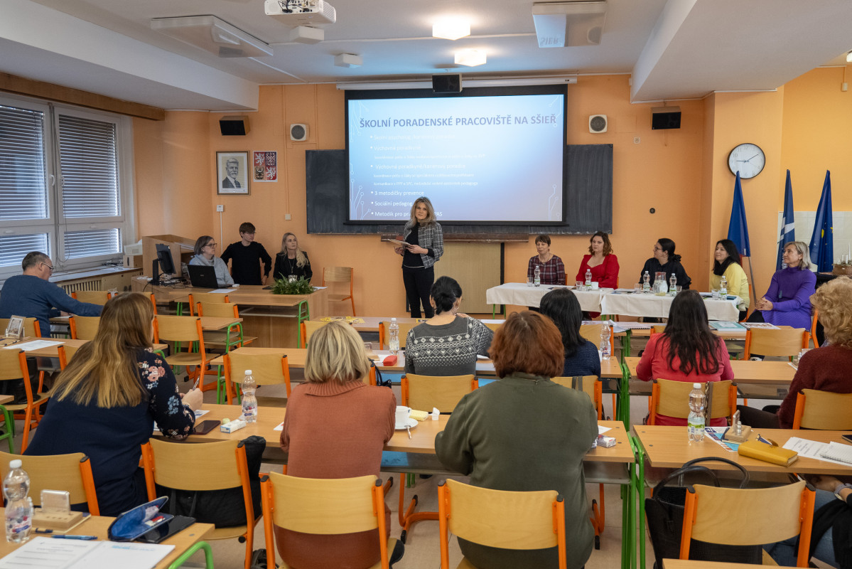 V předvánočním čase 19. prosince v dopoledních hodinách se na SŠIEŘ uskutečnilo setkání výchovných poradců základních škol, kteří mohli sdílet své zkušenosti se vzácnými hosty z Centra kariérového poradenství Zlín: Ing. Martou Müllerovou a Ing. Andreou Vorlovou.