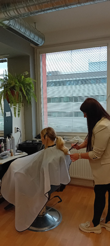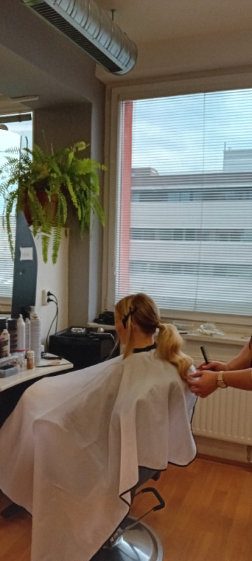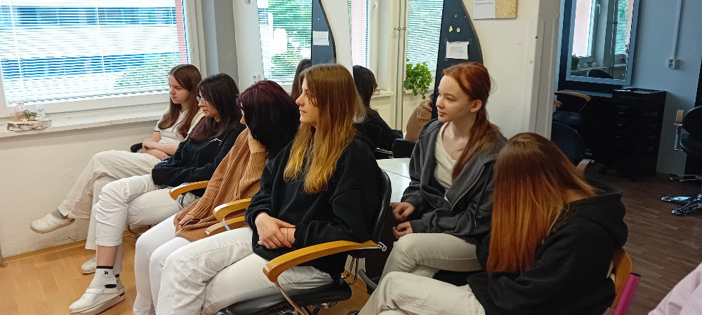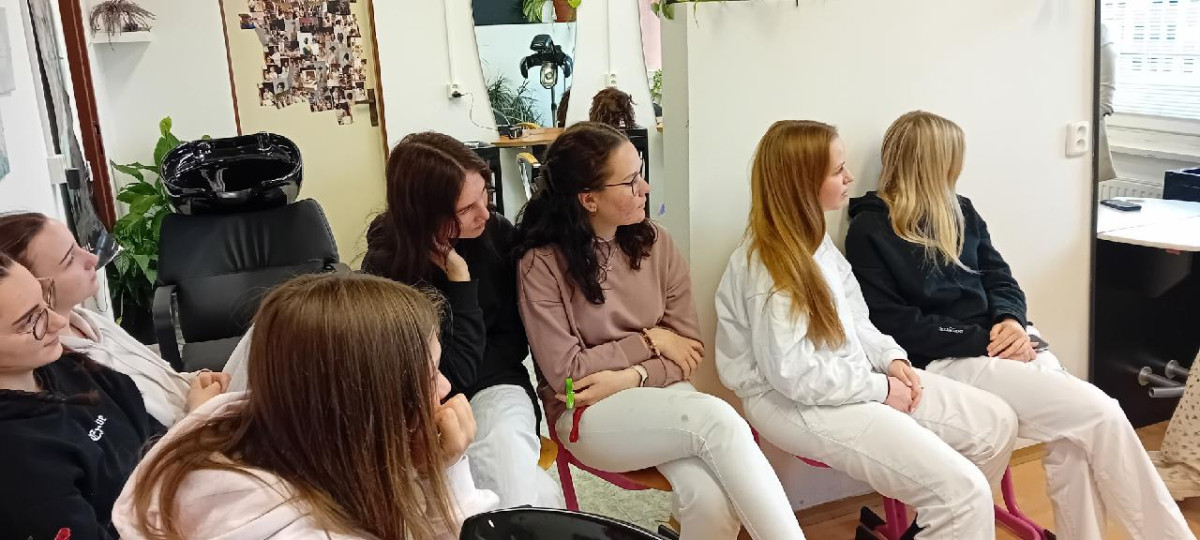 Dne 6. 5. 2025 jsme uspořádali pro žákyně 2. ročníku školení na téma společenské účesy. Z kadeřnického salónu z Valašského Meziříčí k nám přijela kadeřnice p. Yaroslava Babiniuk