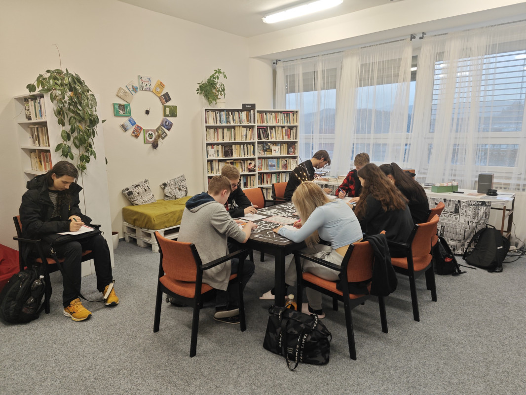 28. listopadu proběhlo v prostorách žákovské knihovny školní kolo Olympiády v českém jazyce, kterého se letos zúčastnilo 11 soutěžících. Po náročném gramatickém testu ověřujícím znalosti z oblasti morfologie, lexikologie a větné skladby na žáky čekala slohová práce na téma Cesta za snem.