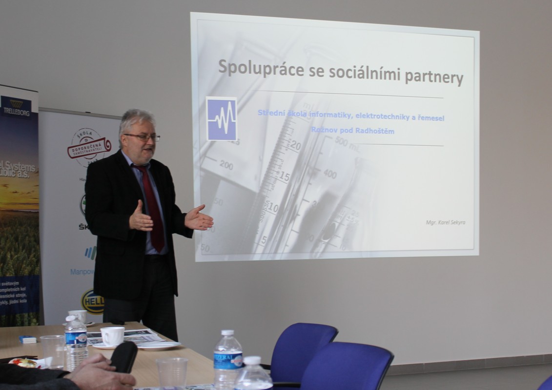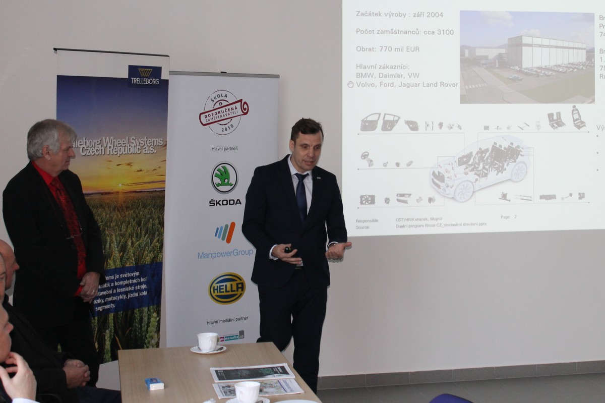 Ředitel školy poděkoval předsedovi Klubu zaměstnavatelů panu Pavlu Hulákovi za organizaci soutěže a zástupcům firem za udělené hlasy. Zástupce ředitele pro PV Mgr. Sekyra poté prezentoval společně s Ing. Kahánkem (firma BROSE) formy spolupráce mezi školou a firmou.