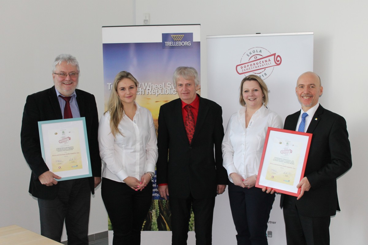 Ocenění převzali dne 7. 2. 2019 v prostorách firmy Mitas – Trelleborg Wheel Systems zástupci školy Mgr. Miroslav Trefil a Mgr. Karel Sekyra za přítomnosti zástupců partnerů školy, firmy BROSE a firmy ROBE lighting.