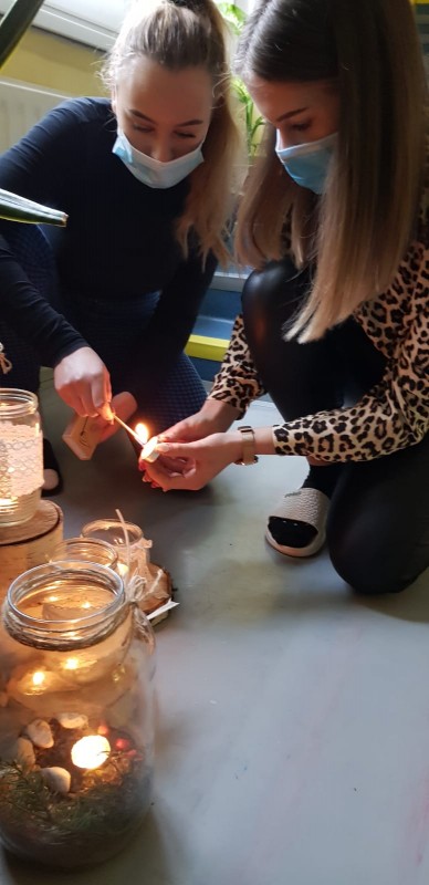 Vánoční atmostéra ovládla i budovu teorie. Netradiční stromečky na stěnách, které vytvořily děvčata z oboru kadeřnice, kouzelné svícny rozmístěné po chodbách a velký vánoční strom ve vestibulu letos doplnily mini stromky ve vysokých květináčích.