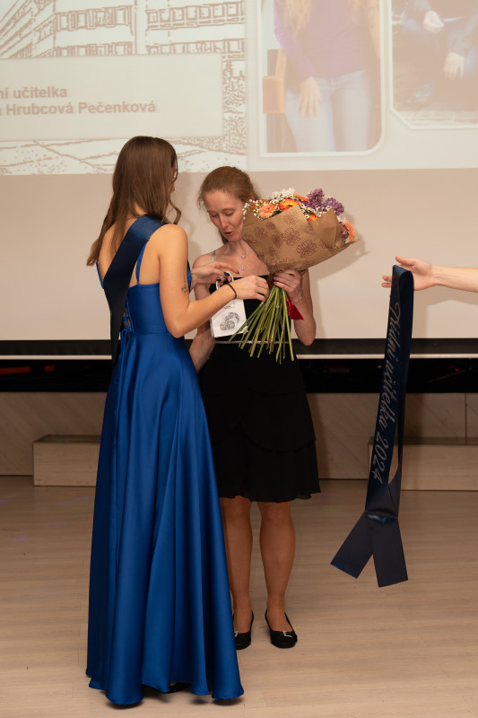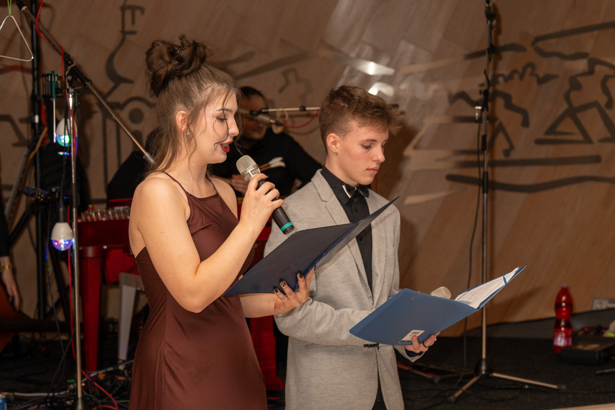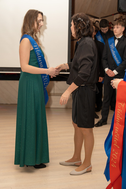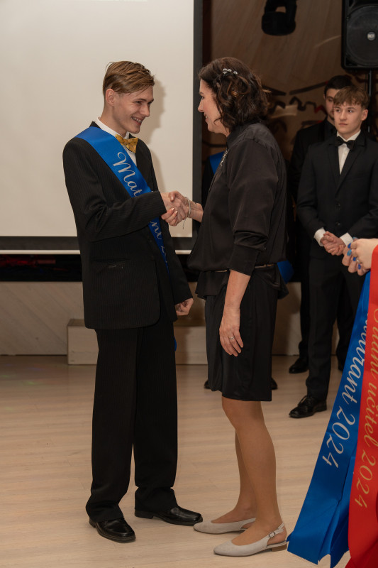 ...zaznělo velkolepě hlavním sálem hotelu Eroplán minulý pátek poté, co paní ředitelka, Ing. Milada Chamillová, přivítala s našimi moderátory – Terezou a Danielem – všechny přítomné…. Ples maturantů SŠIEŘ 2024 byl zahájen.