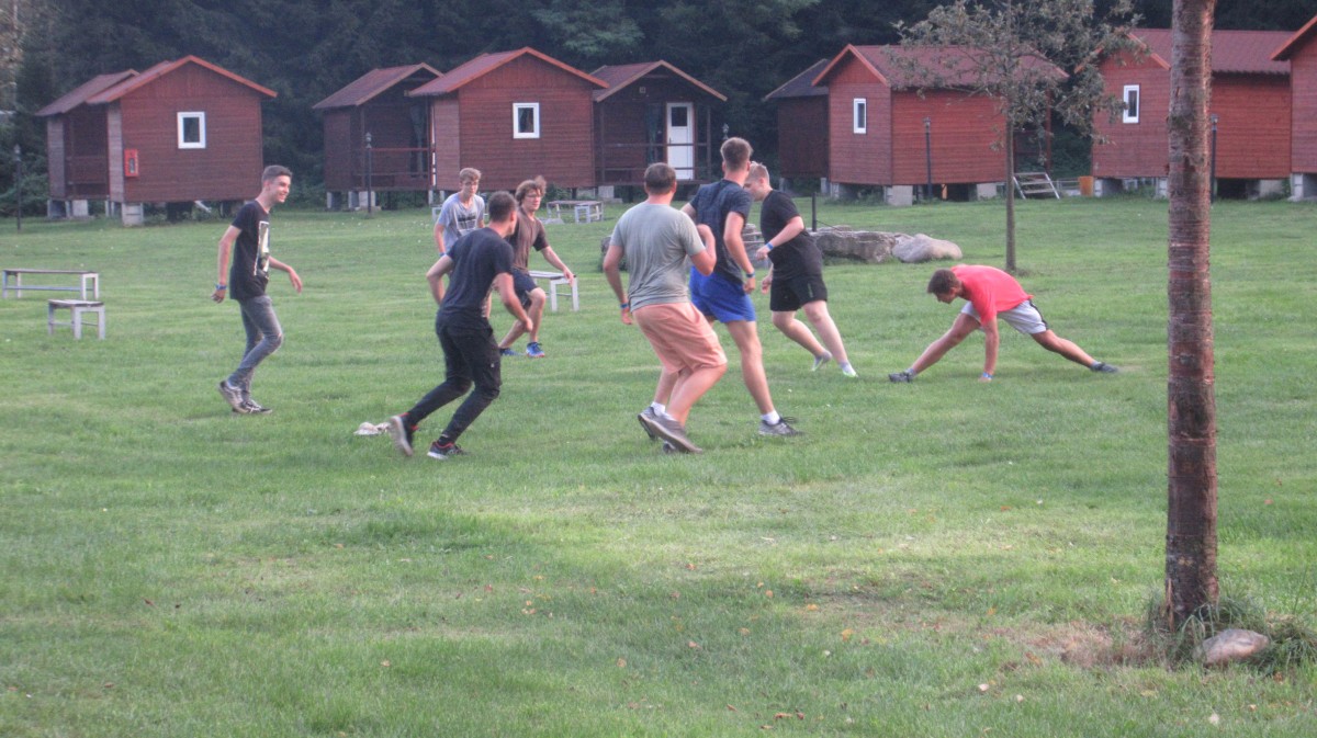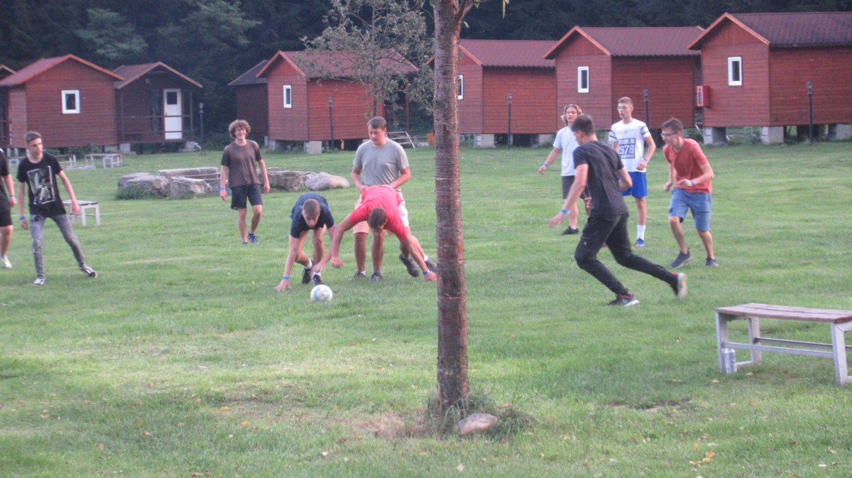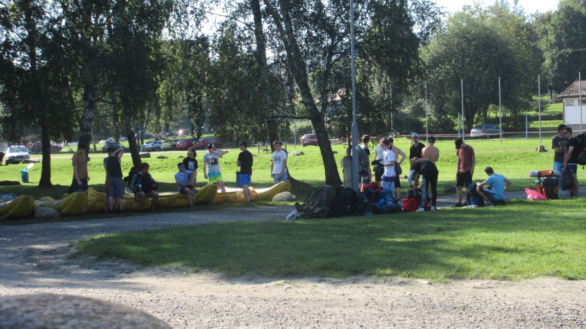 Předpověď počasí nelhala, večer hustě pršelo, ale ráno jen mžilo, což vodákům tak nevadí. Projeli jsme všechny krumlovské jezy, v polovině cesty jsme se zastavili v občerstvení U Milana na opékanou klobásu nebo hermelín, ohřáli se u ohně a za dvě hodiny dorazili do kempu Zlatá Koruna. Následovalo převlečení do suchého prádla a cesta do kempu U Vikinga, místa našeho ubytování. Předposlední společně strávený den uplynul jako voda, ještě následovaly nějaké sportovní aktivity a balení na cestu domů.