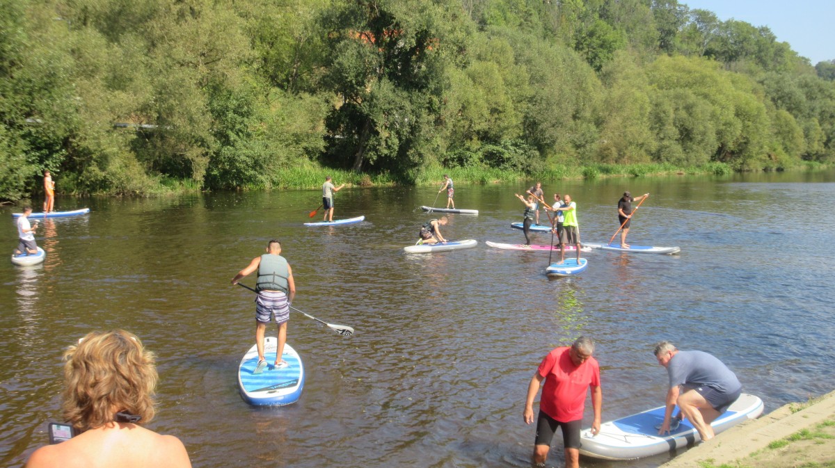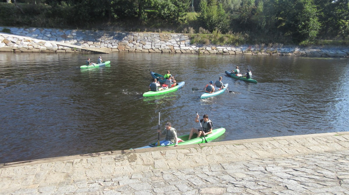 Ve středu nás čekala nejkratší etapa celého kurzu se zajímavou prohlídkou jednoho z nejnavštěvovanějších měst naší republiky – Českého Krumlova. Počasí doprovází ještě letní teploty, nálada je výtečná. Po příjezdu do kempu Nové Spolí na žáky čekalo překvapení. Všichni si mohli vyzkoušet jízdu na paddleboardingu a kajaku.