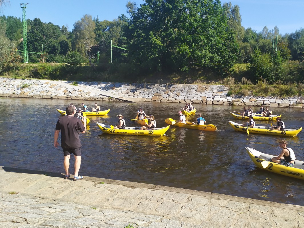 Řada budoucích vodáků okusila slasti mokrého putování vůbec poprvé a do kánoí někteří nastupovali s mírnými obavami. Po počátečním výcviku na klidné vodě ale posádky na kánoích s kuráží zdolávaly postupně meadry a říční jezy z jihočeského Vyššího Brodu až do Zlaté Koruny.