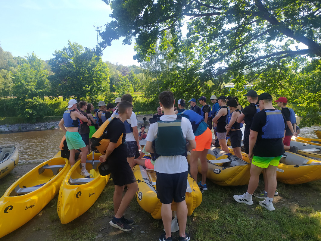 Z Rožnova pod Radhoštěm jsme se autobusem dopravili do kempu Pod Hrází ve Vyšším Brodě, odkud započalo naše vodácké putování. Pod vedením zkušených instruktorů Evžena Tichavského, Ondřeje Miky, Jany Vaculínové a Jany Josefíkové jsme se seznámili se základními vodáckými dovednostmi a technikou pádlování.