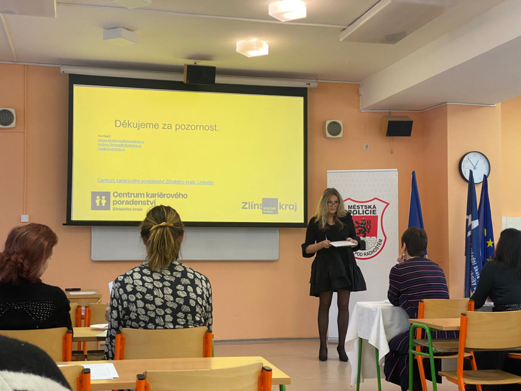 Také poslední část setkání charakterizovalo téma nabízení pomoci, konkrétně prostřednictvím nesmírně užitečného kariérového poradenství. Paní Marta Müllerová a Andrea Vorlová z Centra kariérového poradenství na „rožnovskou střední“ opět přinesly další novinky, které jejich centrum nabízí či které jsou v plánu na nejbližší měsíce.