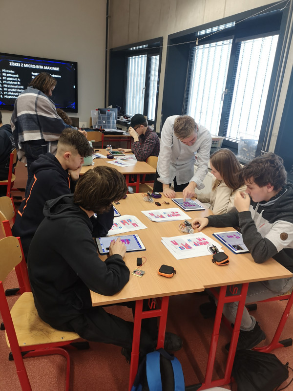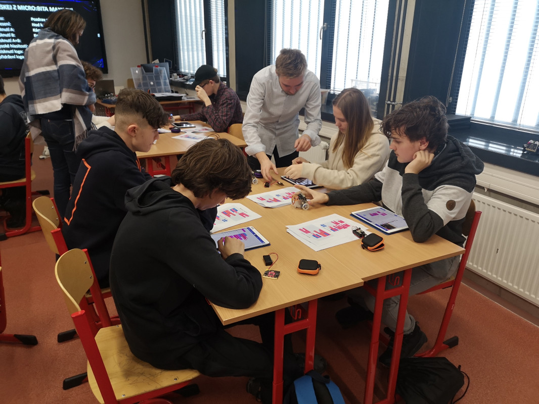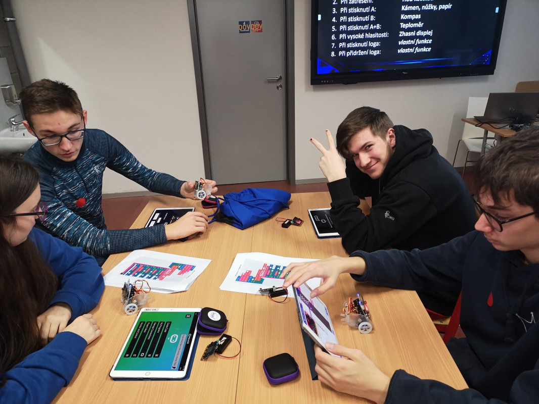 Zúčastnili jsme se i vzdělávacího programu MICRO:BIT. Mohli jsme si vyzkoušet práci s microbity a dozvěděli jsme se něco i robotice. Byli nám představeni různí roboti a také jsme si vyzkoušeli programování a ovládání robotů pomocí malých robotických sad a tabletů.