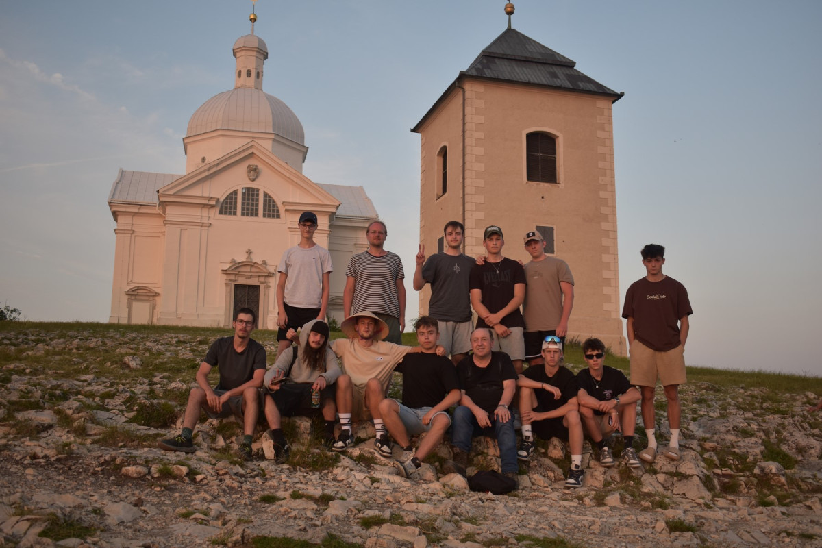 Ale to nebylo vše. Odpoledne jsme strávili u lomu, kde jsme se vykoupali a odpočinuli si. Večer jsme se vydali na Svatý Kopeček sledovat západ slunce. Křížová cesta nás zavedla až na vrchol, kde nás čekal nádherný výhled, který nám doslova vzal dech. Prošli jsme se kolem kostela svatého Šebastiana až ke kapli Božího hrobu, a pak, unavení a plni dojmů, jsme se vrátili na ubytování, kde jsme odpočívali po náročném dni.
