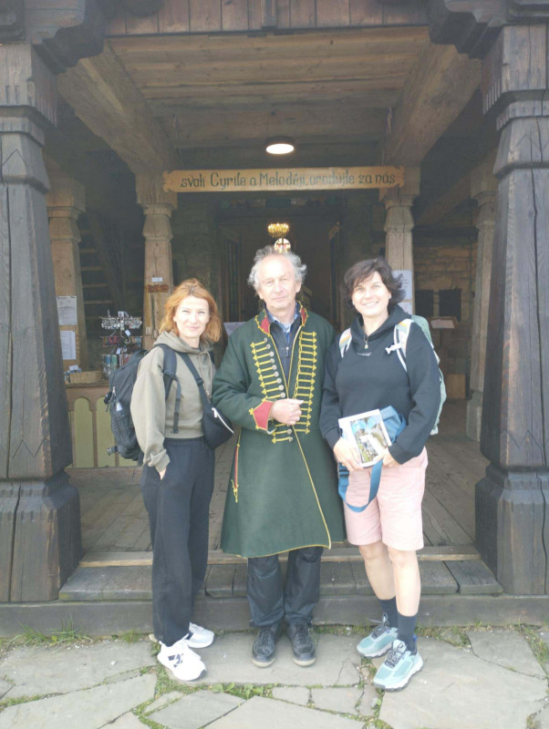 Druhý den ráno jsme se vydali na vrchol Radhoště, kde jsme navštívili kapli sv. Cyrila a Metoděje. Zde jsme si vyslechli zajímavý odborný výklad o historii kaple i duchovním významu tohoto místa. Po prohlídce jsme pokračovali pěšky do Rožnova pod Radhoštěm.
