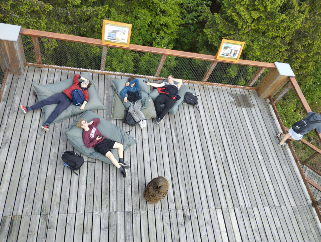 Po sportovním zážitku jsme pokračovali na Pustevny, kde žáci navštívili Stezku Valašku – vyhlídkovou trasu lesem s lanovým mostem, skleněnou plošinou a výhledy na okolní hory. Noc strávila skupina v hotelu Radegast, odkud byl nádherný výhled na večerní krajinu.