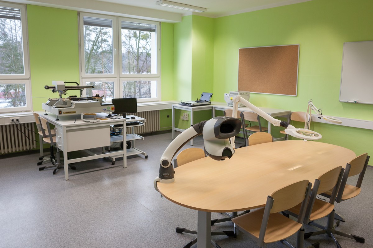 Vzdělávací středisko je skvěle vybavené. Je tady mechanická část, pneumatická část, práce s robotem, všechno je propojené a navazuje na sebe.