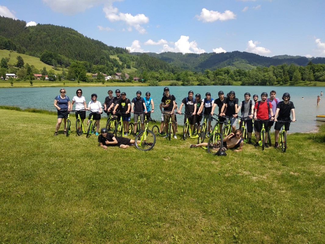 Další část projektového dne jsme strávili jízdou na koloběžce. Pohodová 28 km trasa z mírného kopce vedla z Velkých Karlovic valašský údolím podél řeky Bečvy až na Vsetín.Jízda na koloběžce představuje zdravý komplexní pohyb, při kterém se posílí většina svalů v celém těle a je vhodná jako aktivita pro začínající sportovce, kteří doposud žádný sport neprovozovali a je především zábavou a pohyb venku na vzduchu je důležitý také pro duševní svěžest. Po více než osmi měsíční absenci tělesné výchovy, nedostatku pohybu a absenci osobních kontaktů tuto aktivitu a především pobyt celého kolektivu na čerstvém vzduchu v nádherné přírodě žáci velmi pozitivně ocenili. Součástí projížďky byla také týmová spolupráce, kdy rychlejší a sportovně zdatnější žáci se museli přizpůsobit tempu těch pomalejších a méně zdatných a podle toho vhodně volit zastávky a tempo celé skupiny. Také velmi dobře fungovala předávka informací o různých nebezpečích na trase.