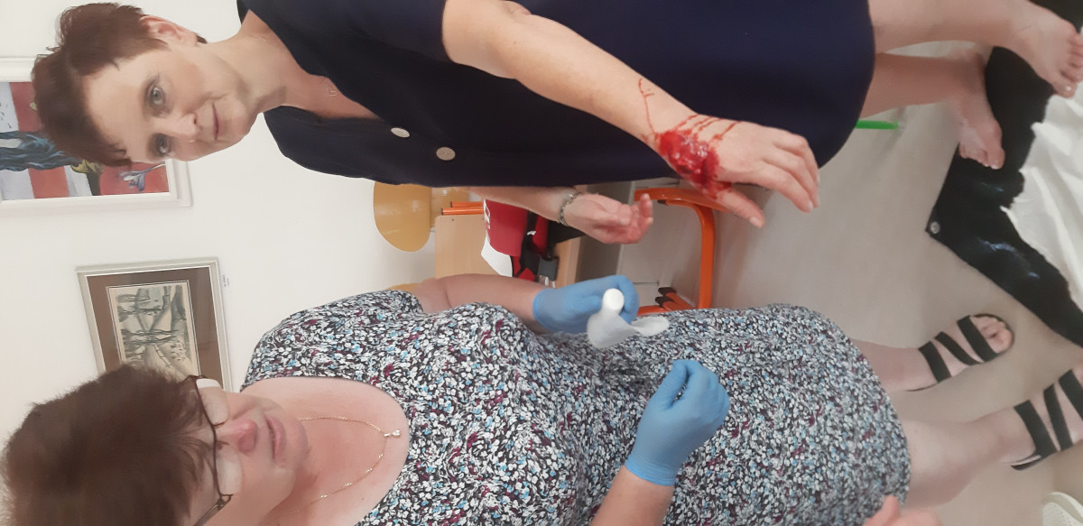 Školení pro 28 provozních pracovníků rozdělených do dvou skupin proběhlo ve dnech 10.-11.7.2024 a vedl ho zkušený lektor PhDr. Mgr. Radim Křivák, BBA z akreditované vzdělávací instituce RESCUE TRAINING CZ. Hlavní náplní byl praktických nácvik v malých skupinách zaměstnanců při řešení modelových situací. Vyzkoušeli jsme si na figurínách resuscitaci formou nepřímé masáže srdce, jak použít defibrilátor (AED), dále jak pomoct při dušení, jak ošetřit vážné krvácení, jak rozpoznat a pomoct při cévní mozkové příhodě, hypoglykemii u nemocných cukrovkou, při úrazu hlavy, anafylaktickém šoku, epileptickém záchvatu, jak ošetřit popáleniny, a to vše na dost reálných učebních pomůckách. Ocenili jsme profesionální přístup a rady lektora při nácviku i jeho ochotu odpovědět na každou naši otázku z vlastních životních situací. I při tak vážných tématech byl však prostor i na legrácky a vtipné komentáře, což ovšem jen umocnilo zážitek z užitečně stráveného času.